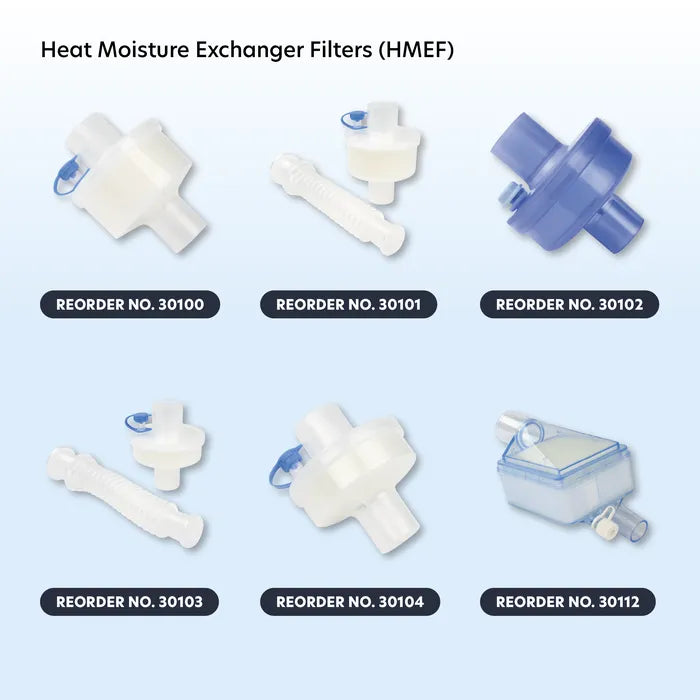 Dynarex Resp-02 HMEFs are single-use respiratory devices designed to provide humidification and help prevent mucosal dryness during mechanical patient ventilation and other respiratory treatments. The integrated bacterial/viral filter reduces the risk of contamination and provides protection from airborne particles and microorganisms.